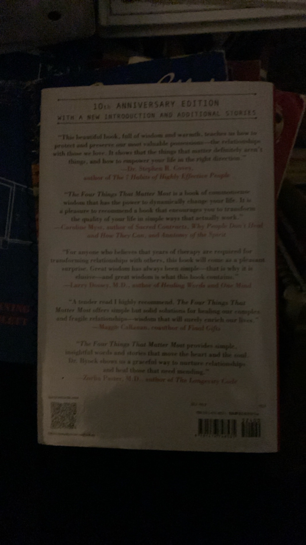 This is the 10th Anniversary Edition of 'The Four Things That Matter Most,' a poignant and insightful book by Ira Byock, M.D. It offers valuable wisdom for nurturing and healing personal relationships. This edition includes a new introduction and additional stories, making it a must-have for readers seeking meaningful life guidance.