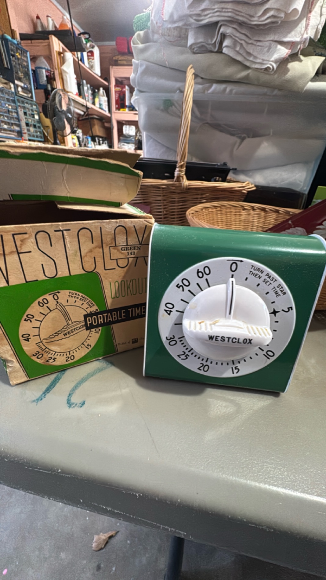 This unique collection features a charming vintage Santa Claus figurine alongside a retro Westclox portable timer. The Santa figurine, dressed in festive attire, adds a classic holiday touch to your seasonal decor. Complementing this is a Westclox mechanical timer, embodying mid-century design with its durable build and nostalgic charm. Both items are in good condition, showcasing minor wear consistent with age, adding to their vintage allure.