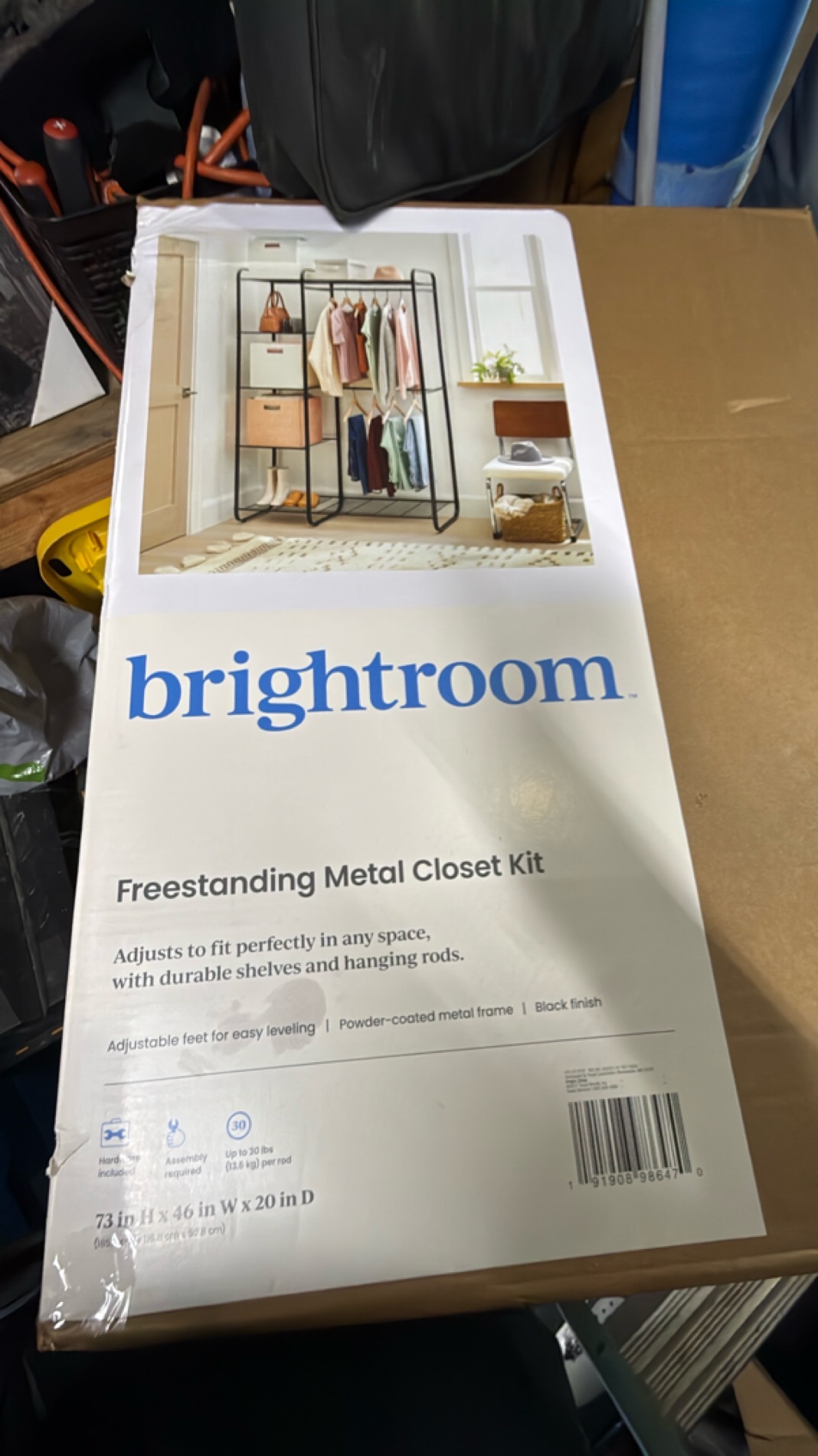 This Brightroom Freestanding Metal Closet Kit is the perfect addition to organize your space efficiently. Crafted with a durable powder-coated metal frame in a sleek black finish, it features adjustable shelves and hanging rods to accommodate various storage needs. The closet kit is designed to fit perfectly in any space, with adjustable feet for easy leveling and stability. Whether you need extra storage in your bedroom, laundry room, or entryway, this versatile closet kit is an ideal choice. Dimensions: 73 in H x 46 in W x 20 in D.