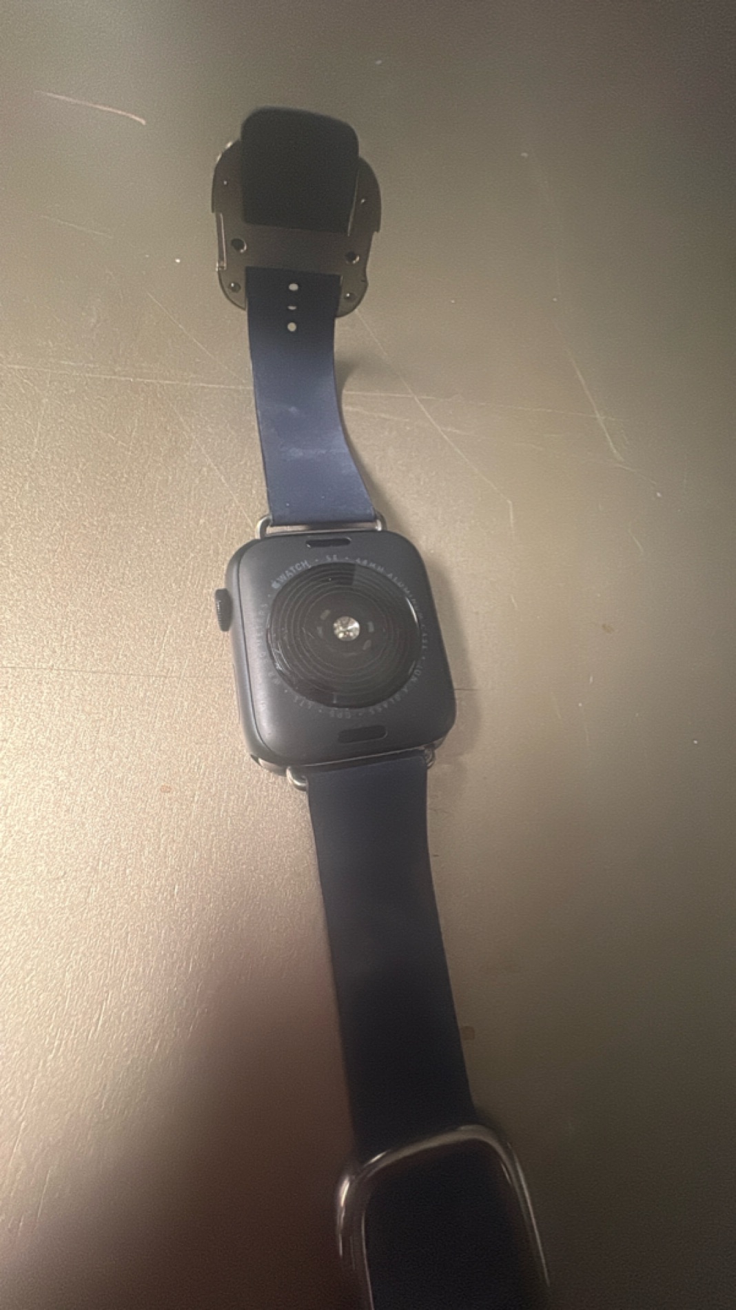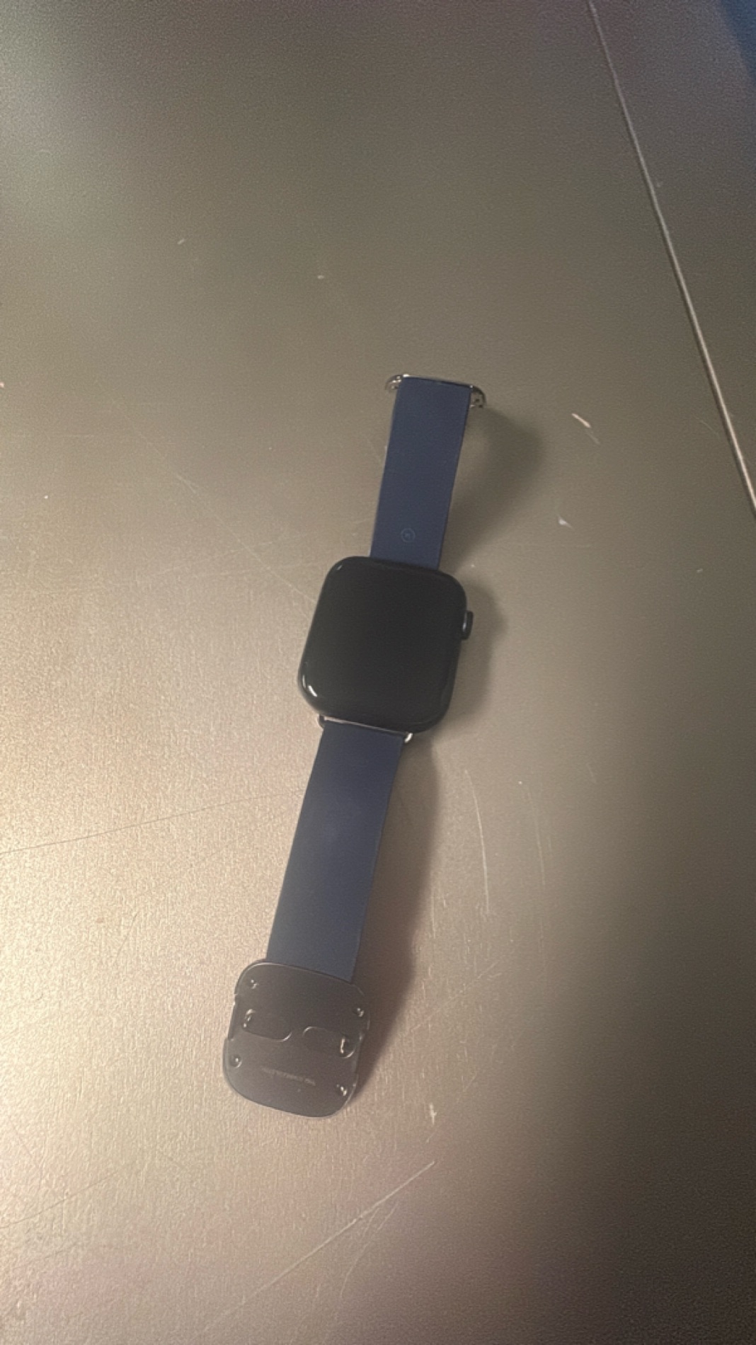 This is a high-quality smartwatch featuring a sleek black face and a durable navy blue band. Ideal for anyone looking to combine style with functionality, this device offers fitness tracking, notifications, and more. Perfect for daily wear.