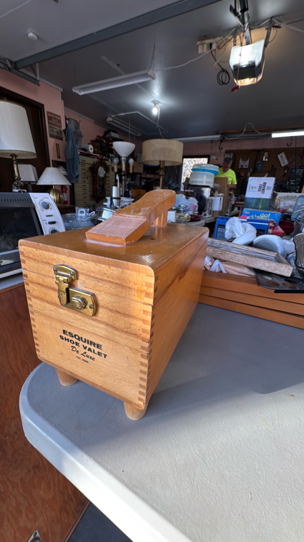 This Esquire Shoe Valet De Luxe collection is a must-have for maintaining the pristine condition of your footwear. Made with quality craftsmanship, each box displays sturdy wooden construction and polished brass hardware. The set includes multiple shoe care items, making it a comprehensive kit for shoe enthusiasts. This collection is perfect for both personal care and as a unique gift idea.