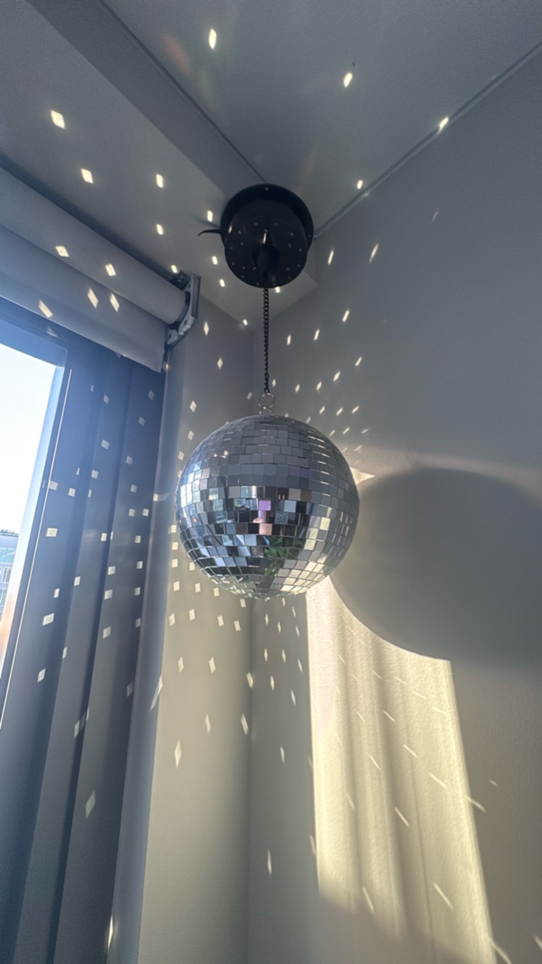 Enhance your room with this stunning hanging disco ball light fixture. It projects beautiful reflections across the room when in sunlight or under a spotlight, creating a lively and captivating atmosphere. Perfect for parties or adding a touch of retro style to your space. The fixture is easy to install and blends seamlessly with various interior designs.